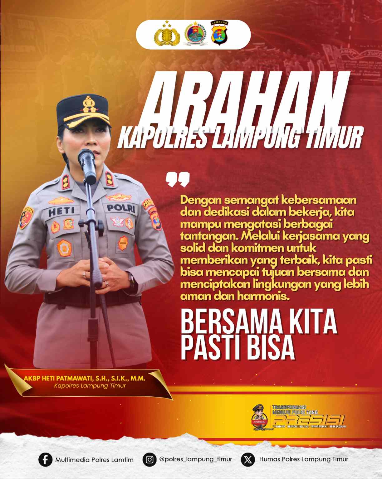 “Jika kita kompak dan bekerja sama dengan baik, situasi keamanan saya di Lampung Timur akan terus terjaga dengan baik,” tutupnya.